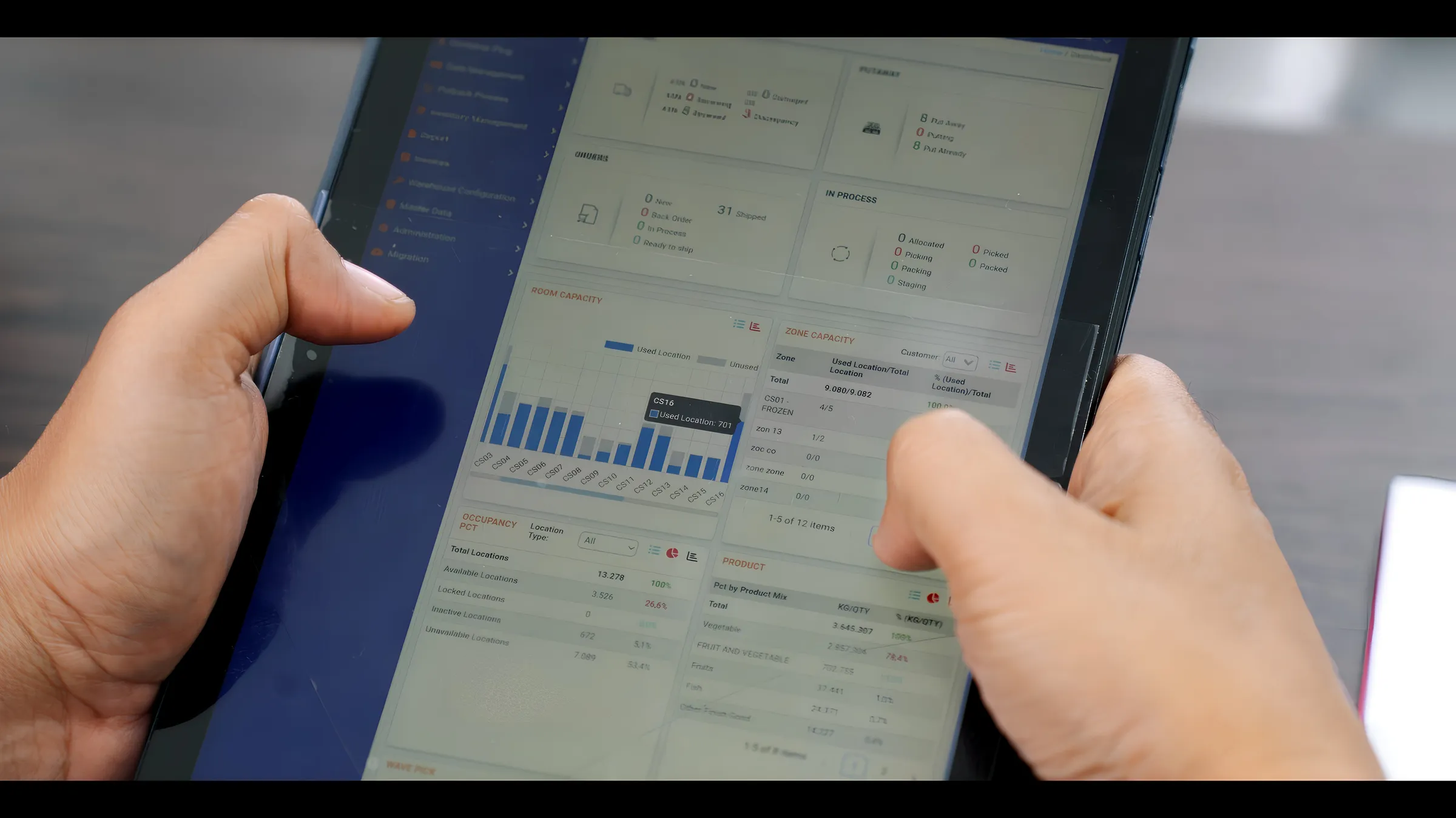 Sebagai penyedia solusi cold storage terintegrasi, PT Nusantara Agro Mandiri menghadirkan sistem operasional yang didukung oleh Warehouse Management System untuk memastikan pengelolaan stok berjalan akurat dan efisien. WMS yang digunakan juga didukung dengan real-time monitoring mulai dari penerimaan barang, penyimpanan di dalam cold storage, hingga proses pengiriman. Setiap pergerakan pallet tercatat melalui sistem barcode dengan racking terstruktur, sehingga visibilitas stok dapat diakses secara akurat.